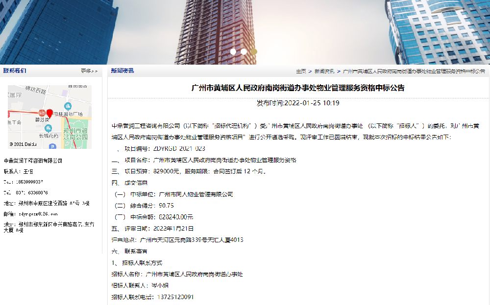 鼎點娛樂工程咨詢有限公司(以下簡稱“招標(biāo)代理機構(gòu)”)受廣州市黃埔區(qū)人民政府南崗街道辦事處 (以下簡稱“招標(biāo)人”)的委托,對廣州市黃埔區(qū)人民政府南崗街道辦事處物業(yè)管理服務(wù)資格項目”進行公開遴選采購,F(xiàn)評審工作已圓滿結(jié)束,現(xiàn)就本次招標(biāo)的中標(biāo)結(jié)果公告如下:一、項目編號:ZDYRGD-2021-023二、項目名[詳細(xì)]